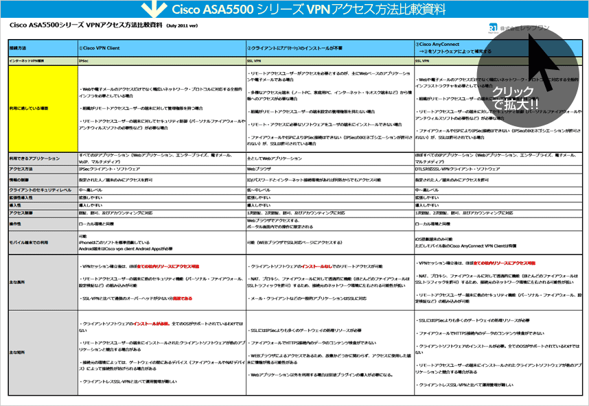 IPsec、SSL-VPNの違いも一目でわかります。